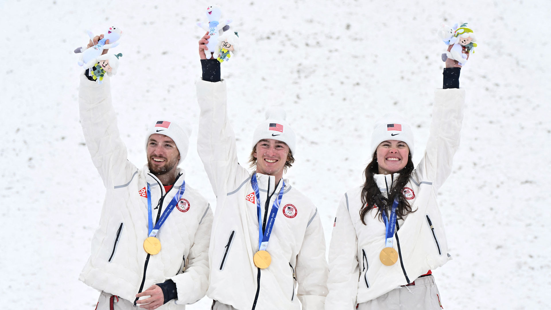 Team USA clinched back-to-back Olympic gold in mixed team aerials after a dominating performance at Livigno Aerials & Moguls Park on Saturday.